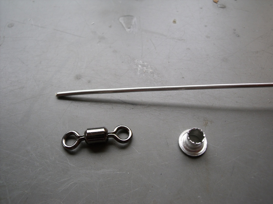 ステンレス線1,6mmと200kgまで絶えるスイベル、後は4mmのハトメを用意します。
