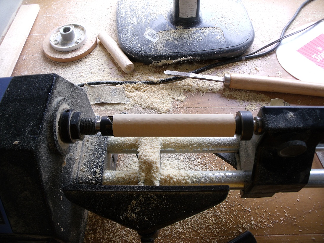 旋盤を回転させノミで削っていきます。